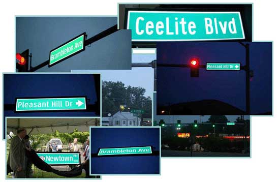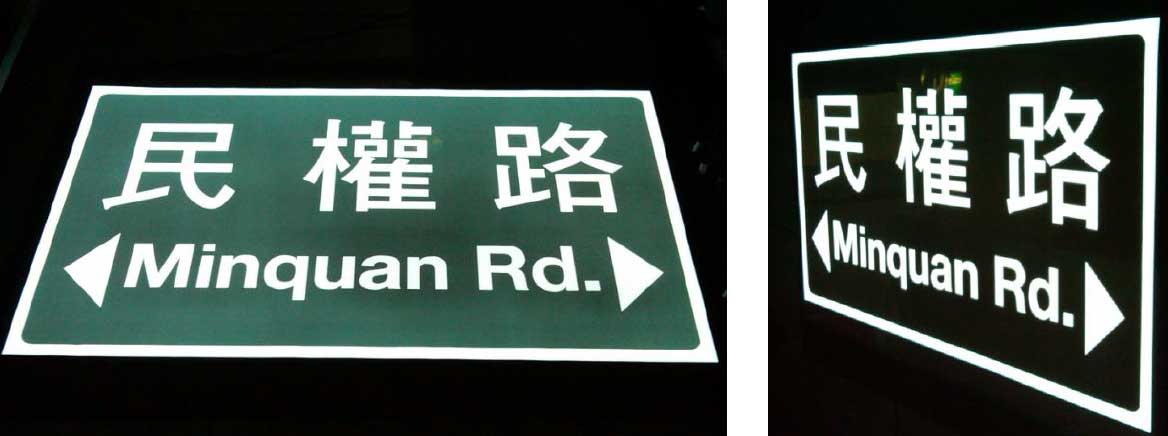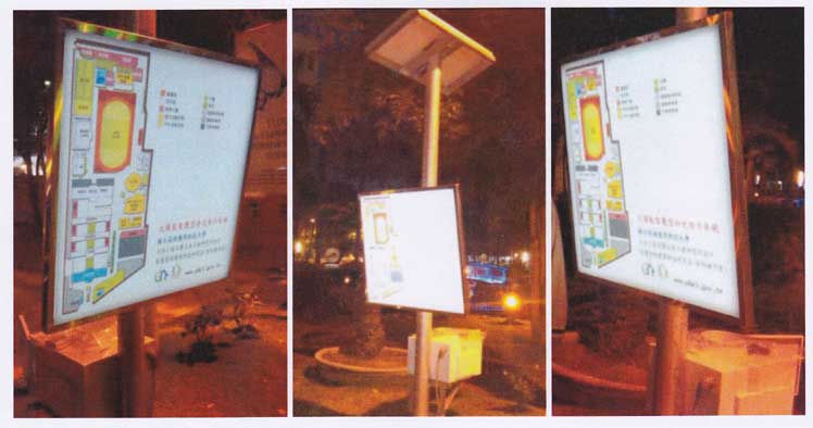 消費電力が少ないためソーラー電源で点灯。電気のない田舎の道にも看板を!
