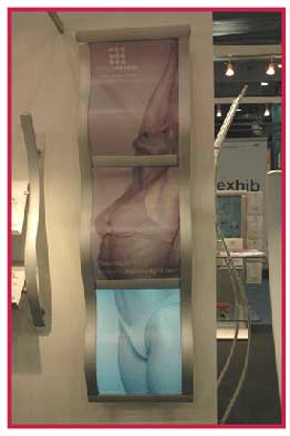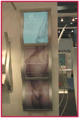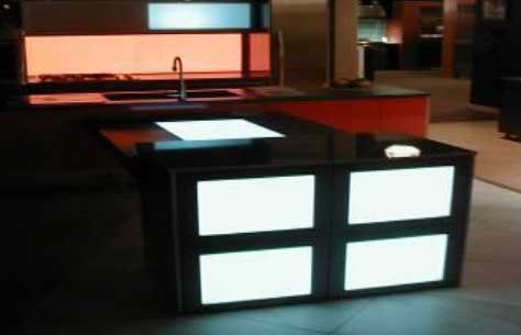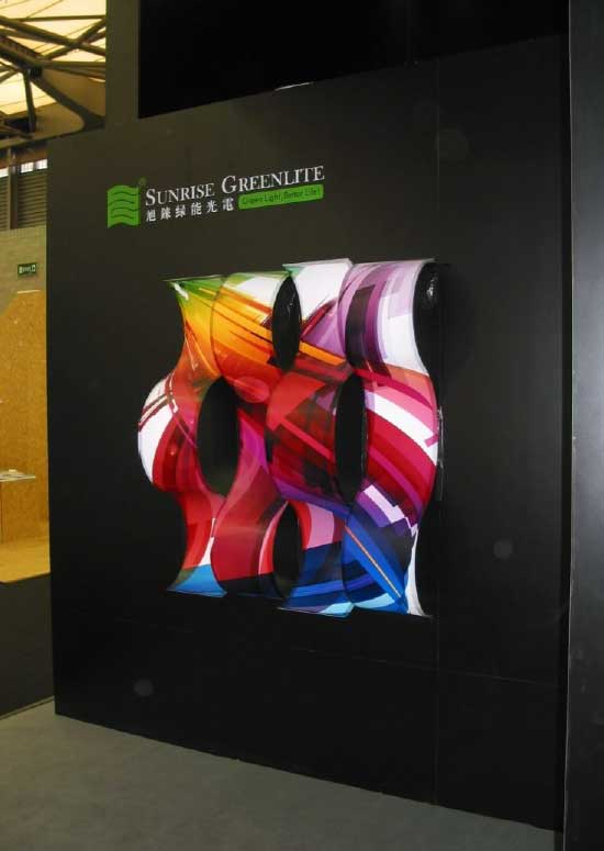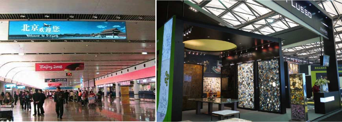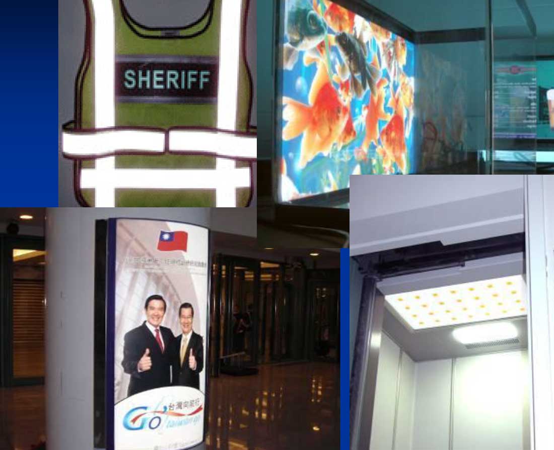 左:北京空港のLEC看板 看板両面の厚さ2センチ以下。 右:宝石展示でのバックライト用として